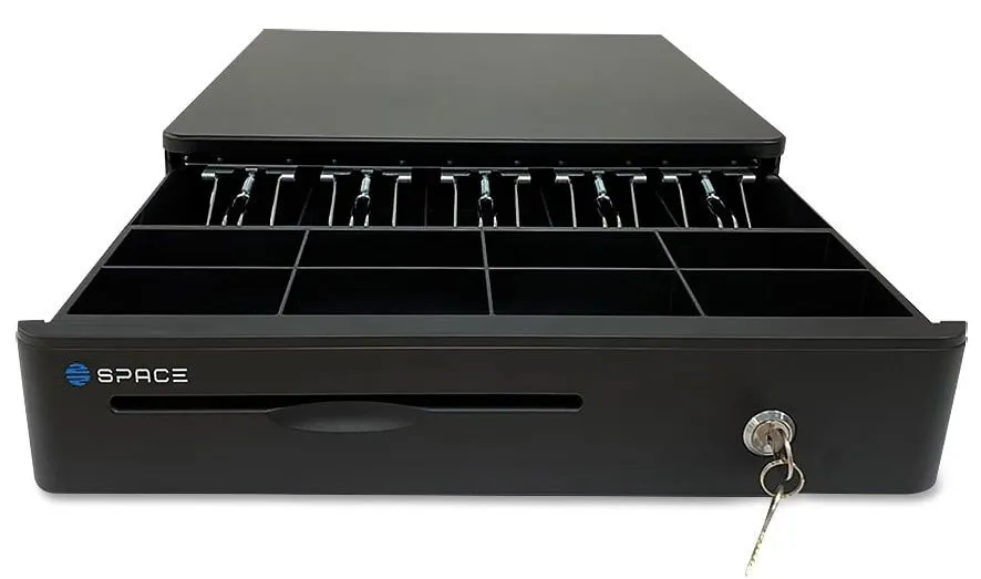Надежный электромеханический денежный ящик черного цвета выполнен из прочного металла. Продуманная конструкция позволяет надёжно защитить денежные средства. Имеется прорезь для непосредственного размещения документов.