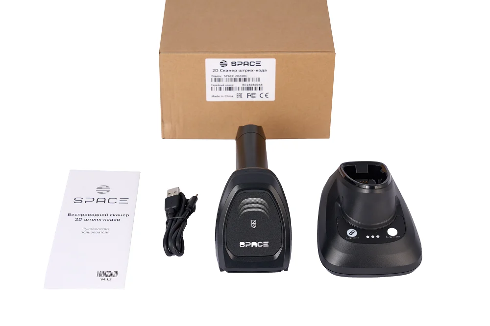 2D Сканер ШК SPACE X-2024RC-2D- BT экран беспроводной с подставкой QR Code, DataMatrix (+маркировка